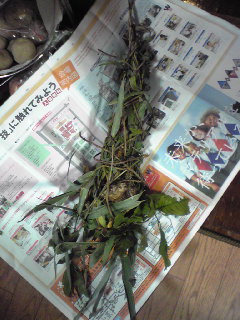 つるや葉っぱで巻いてあります。