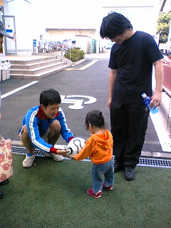 フットサル終了後は、ボールを借りてご機嫌の2人。