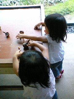 じっと見つめてみたり、駒を回そうとしてできなくて癇癪を起こしてみたり。